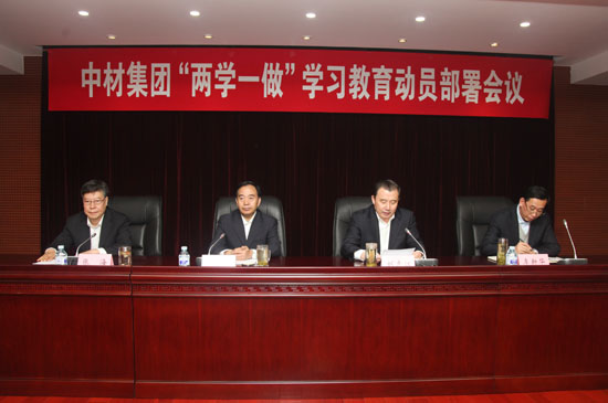 集團“兩學一做”學習教育領導小組組長、董事長劉志江主持會議,集團“兩學一做”學習教育領導小組組長、黨委書記于世良作了動員部署講話,集團“兩學一做”領導小組副組長、黨委常委、副總經理張海部署了《中材集團黨委關于開展“學黨章黨規、學系列講話,做合格黨員”學習教育的實施方案》。