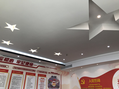 最后讓我們昂起頭,天花板上金色的五星照耀著整個活動室,一種莊嚴神圣的情感沖擊著每一位共產黨員的心靈,感受著身為黨員的驕傲和自豪。