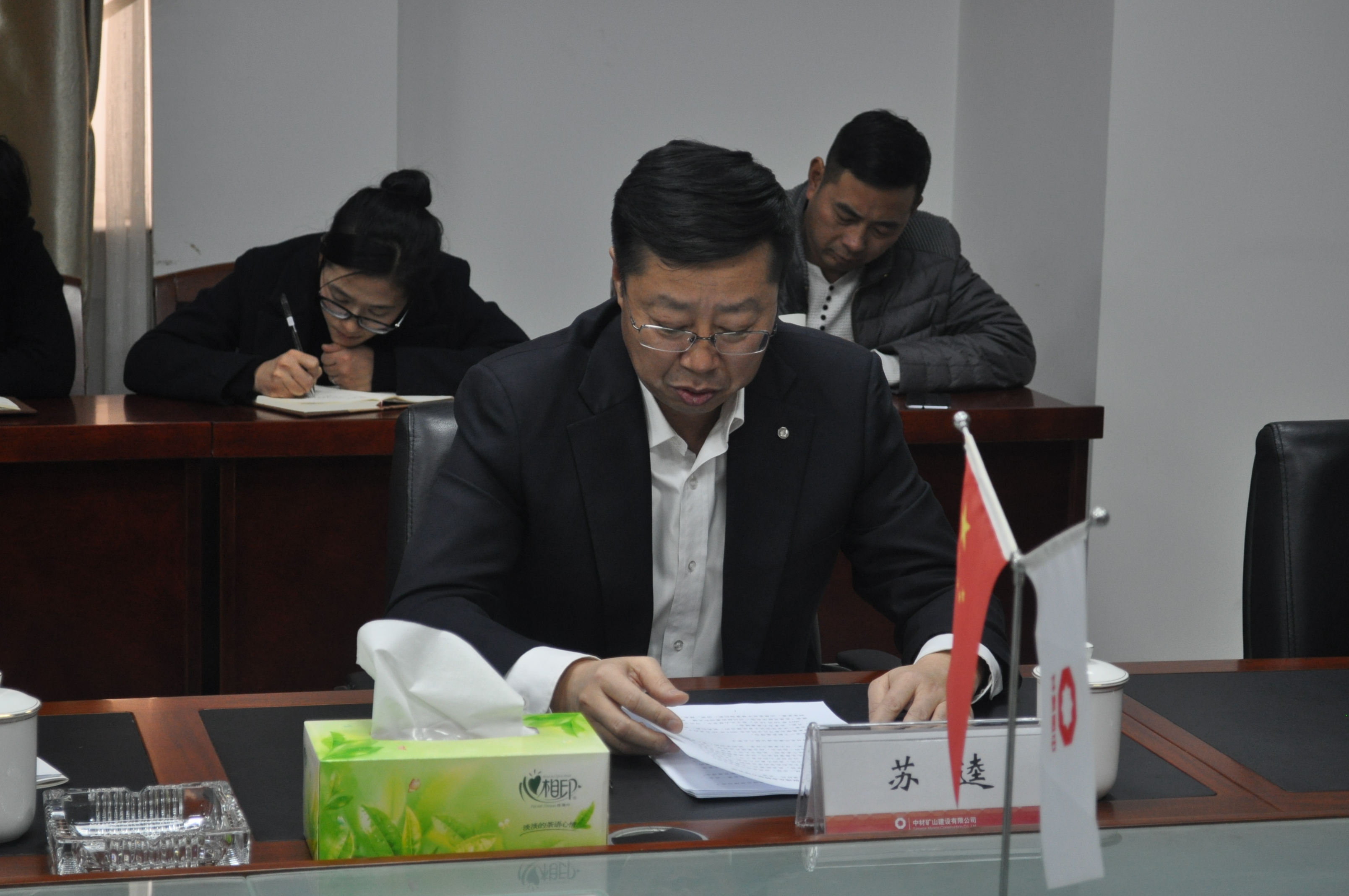 2019年1月3日下午,中國建材股份黨委委員、副總經理蘇逵到中材礦山建設有限公司上黨課。中材礦山領導班子及全體黨員參加了學習。中材礦山黨委書記劉峰山主持會議。