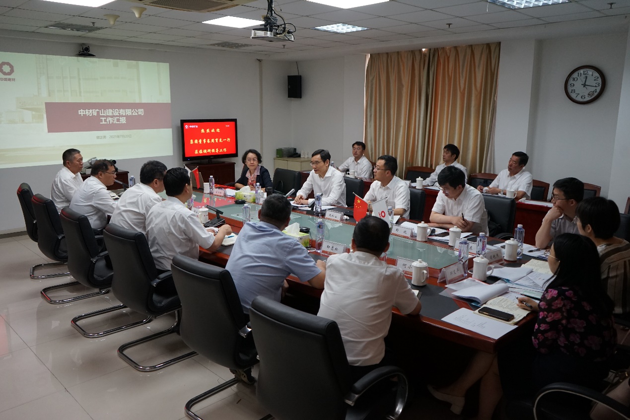 周育先一行聽取了中材礦山總經(jīng)理郭正勇關(guān)于公司總體情況及發(fā)展思路的工作匯報及黨委書記劉峰山的補(bǔ)充匯報,充分肯定了中材礦山13年來在生產(chǎn)經(jīng)營、科技創(chuàng)新、形象建設(shè)、黨建引領(lǐng)等方面取得的成績。